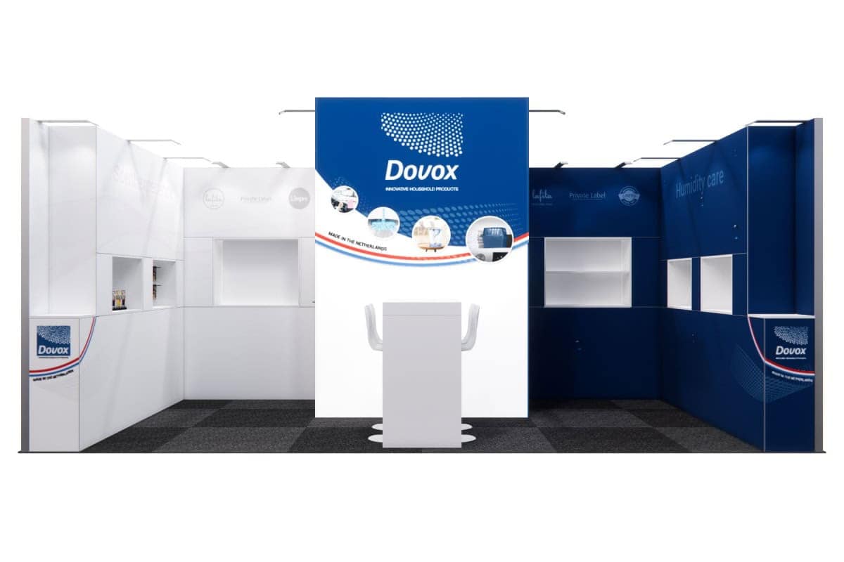 Exhibition stand Design 137 is a versatile stand from 1 to 24 m² that can be fully customized to suit your needs. It offers a lot of design freedom by allowing you to customize shape, size, floor and visuals. You can also choose from a variety of furniture, accessories and innovative options such as LED walls and multimedia integration, making the booth both visually appealing and functional.