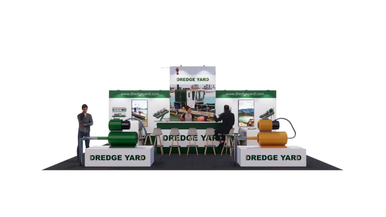 Looking for the perfect trade show booth that stands out and is functional at the same time? Our Exhibition stand Design 18 is just what you need. With a generous area of more than 56 m², this header stand offers enough space to impress your visitors.