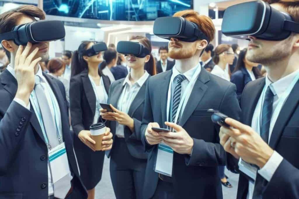 La réalité virtuelle et augmentée (VR/AR) n’est plus de la science-fiction, c’est une réalité dans le monde des stands d’exposition. Plusieurs services de construction de stands incluent désormais des expériences VR/AR qui permettent aux visiteurs de s’immerger totalement dans une présentation virtuelle de votre produit ou service. C’est non seulement impressionnant, mais aussi extrêmement efficace pour les démonstrations de produits ou l’exploration de concepts complexes.