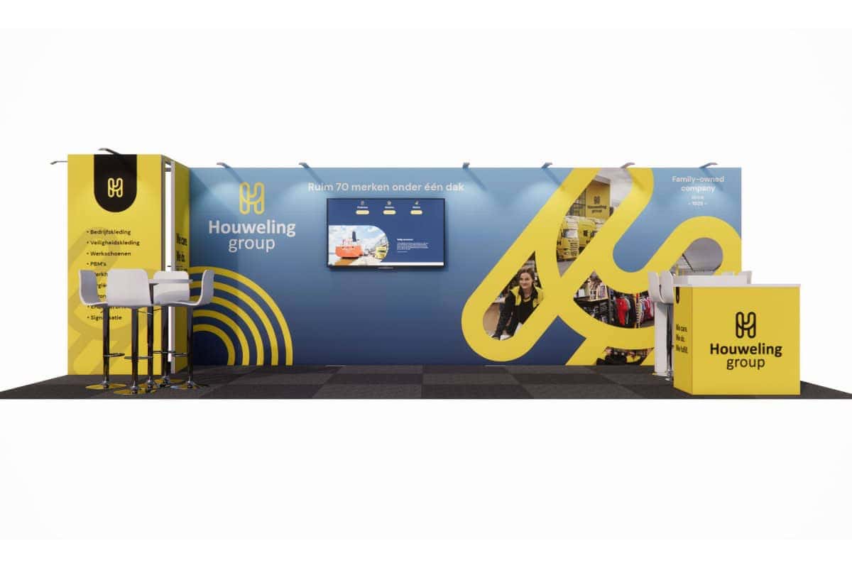 Le stand est modulaire et peut être équipé de cadres LED, d’une intégration multimédia et de mobilier et d’accessoires personnalisés. Cette flexibilité en fait un outil idéal pour les entreprises qui souhaitent présenter leur marque avec force.