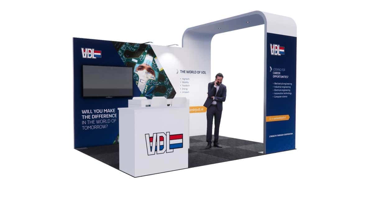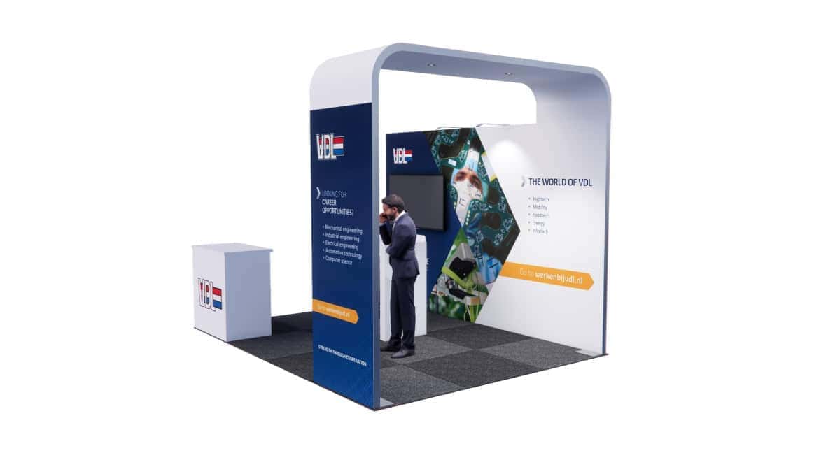 Klanten kunnen deze stand inzetten voor uiteenlopende beursruimtes, van 1 tot 24 m². Het ontwerp leent zich uitstekend voor kopstanden en zorgt voor maximale zichtbaarheid van producten en diensten.