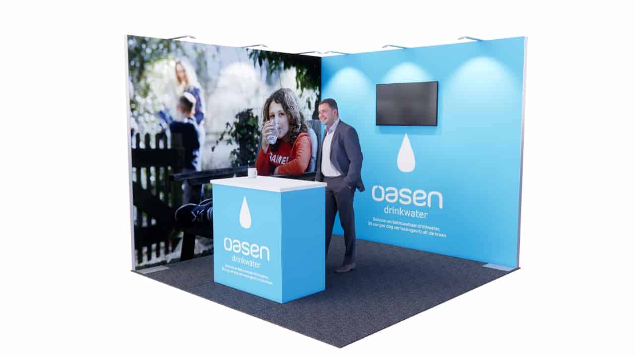 Elke stand is meer dan alleen een ruimte; het is een verlengstuk van je merk. En het beste? Dit is slechts een voorbeeld! Het kan volledig naar jouw wensen en behoeften worden aangepast.