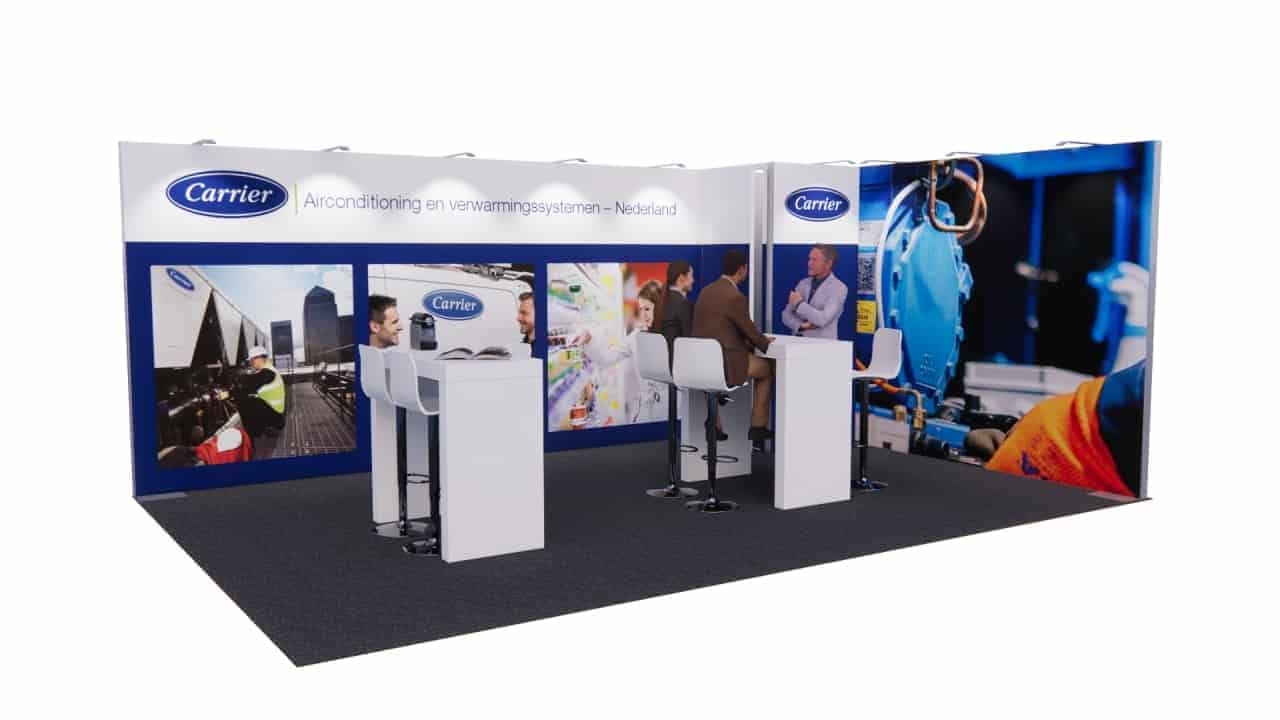Introductie van onze gloednieuwe Beursstand Design 83: een prachtige hoekstand met een royale afmeting van meer dan 24 m²! Ideaal voor ondernemers die echt een statement willen maken op hun volgende evenement.